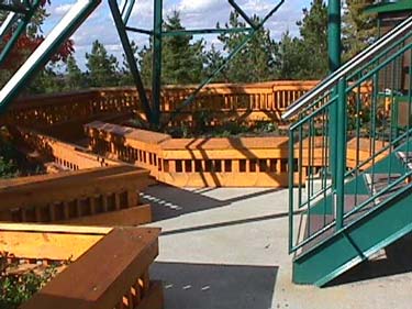 The boardwalk on the far side can be used to easily walk up to the tower base. The tower stairs start the long climb to the top on the right.