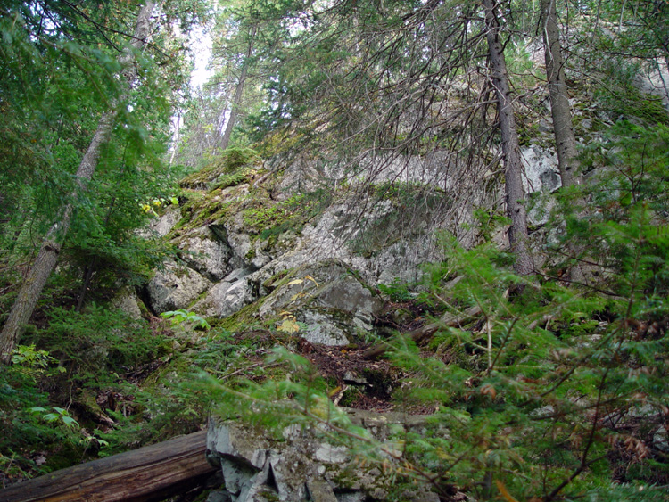 We've hit a bit of a cliff face. You can go left or right. It looks like the right trail ends quickly, so we'll probably end up doubling back...