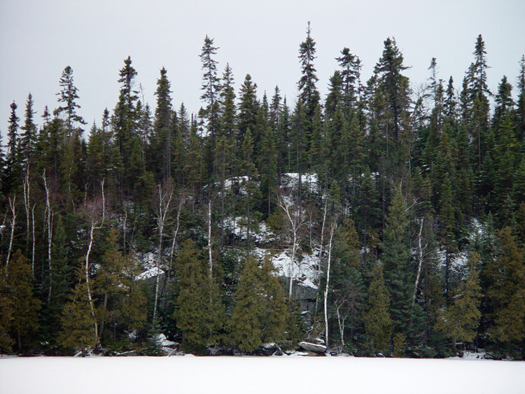 Snow cover rock face.