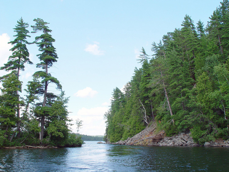This is a shortcut on your way to or from Lake Temagami's north arm to Sandy Inlet. Although the waterway is narrow between this island and mainland, it is deep enough for a boat to pass through. The close quarters has given this spot the nickname "Hole in the Wall".