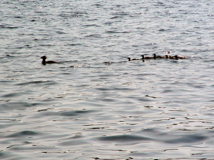 Baby Merganser Ducks following momma