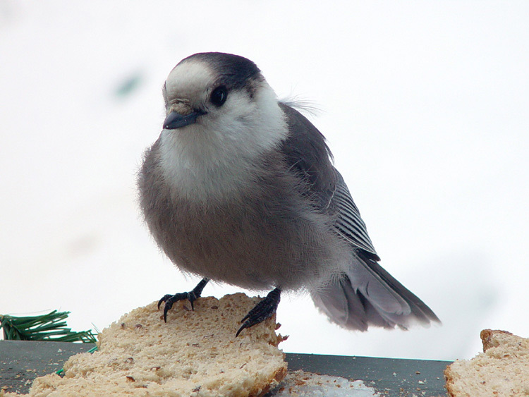 tree for later. Canada Jays travel in family units as they search for food